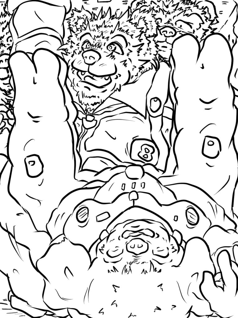 「は! あんなひとの言うことを聞かなそうな生意気な若造どもはゴメン被る。おれはせいぜいこっちのとろそうなクマ族のあんちゃんのアーマーと遊ばせてもらうさ。第二小隊のあのオオカミはやたらに口やかましいし、部下のワンちゃんどもは気が弱すぎて始末に負えない。ははん、まったくストレス解消には持ってこいのシロモノだよな!」